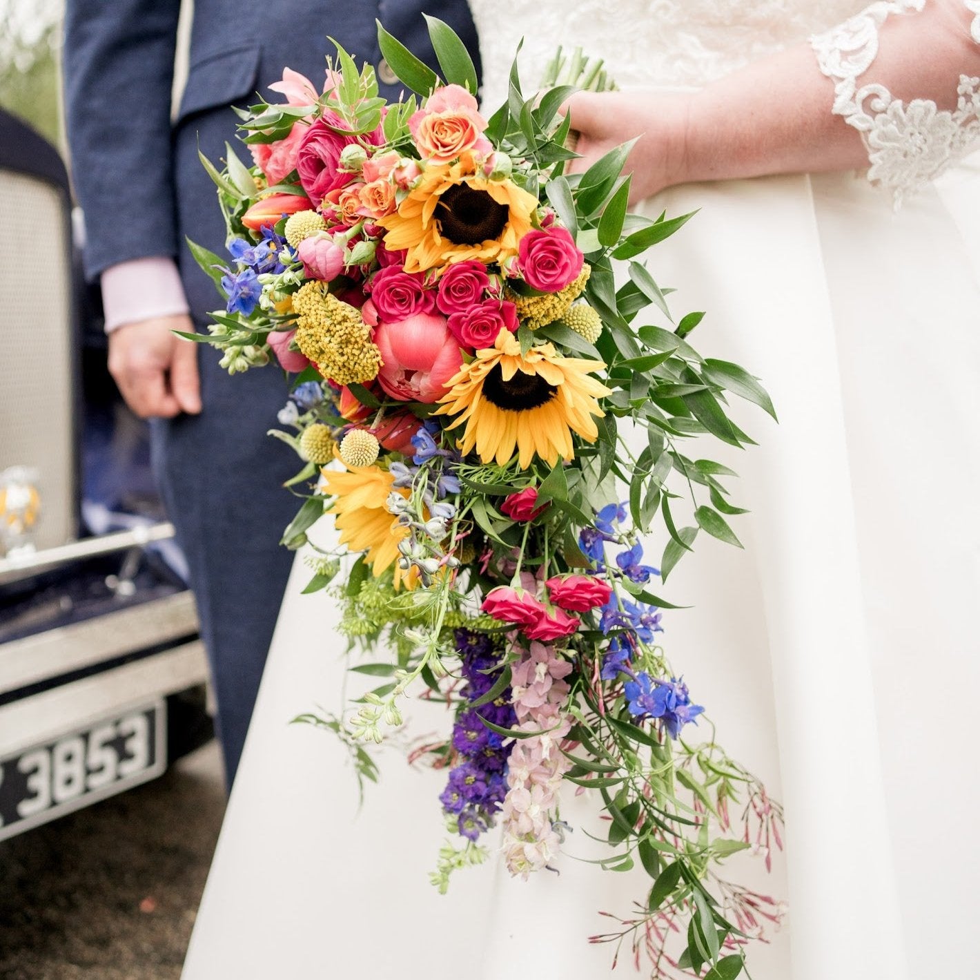 I gave a brief of bright colours and a cascading bouquet for myself but left the rest to Belinda. She sent me a little video a few days before of the flowers that had arrived and even offered a sneaky look at the bouquet the day before (which I turned down as I had full trust in her).